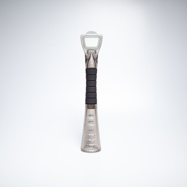 The 4-in-1 Ultimate Muddle Tool incorporates a muddle, bottle opener, can opener and a jigger all into one compact tool. Jigger features clearly marked oz. and ml. measuring lines.