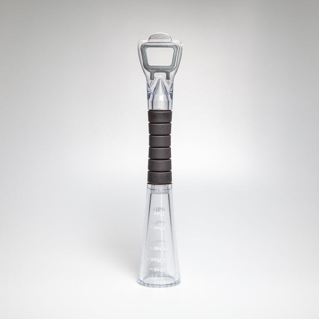 The 4-in-1 Ultimate Muddle Tool incorporates a muddle, bottle opener, can opener and a jigger all into one compact tool. Jigger features clearly marked oz. and ml. measuring lines.